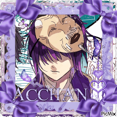 Acchan, a character from Yohaji Yokai Gakkou, depicted with purple hair and a mask in an anime-style portrait.