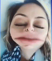Yolamigas makes a funny face with a distorted mouth and sleepy, closing eyes, looking tired.