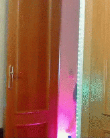 Yoli Yolinda, also known as Yoli Silla, walks into a room with pink lighting and moves a white chair.