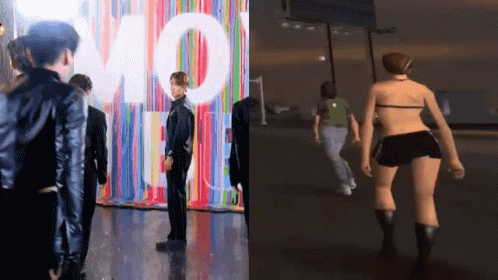 Yoo Taeyang of SF9's walk compared to a GTA character's 'stripper walk' in a popular meme.