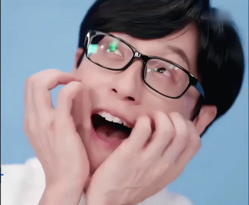 Yoo Jae-suk, the beloved South Korean entertainer, makes adorable and funny expressions, scrunching his face with his hands.