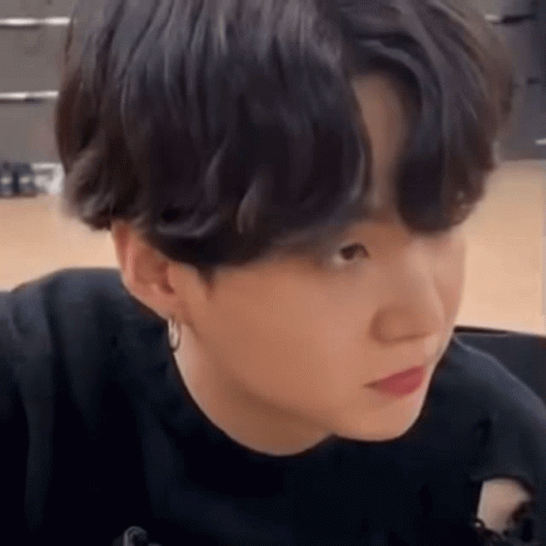 Yoongi from Lilsope smiles sweetly, wearing a black shirt and earrings.
