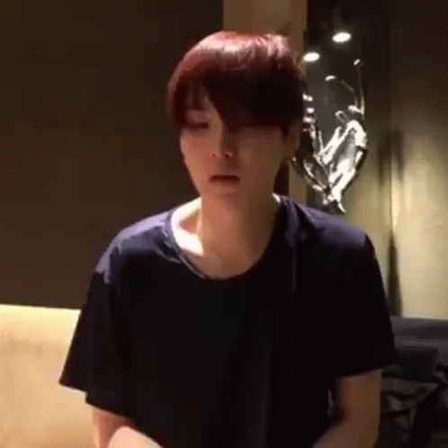 Yoongi (Suga) laughs playfully, covering his face with his hands in an endearing moment.