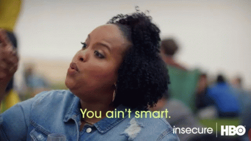 A woman from the HBO series Insecure points and says "You ain't smart, you ain't a genius."