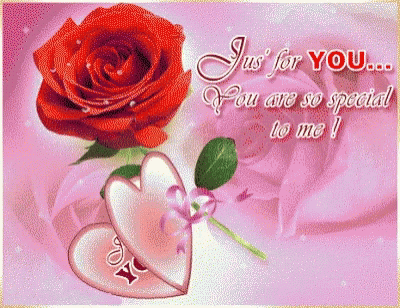 A heartfelt message with a red rose and pink hearts, expressing 'Just for YOU, You are so special to me!'