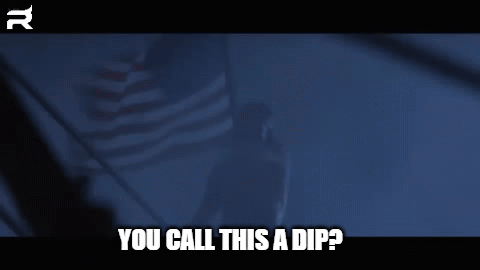 Lt. Dan from Forrest Gump on a ship, defiantly asking 'You call this a dip?' in a meme format.