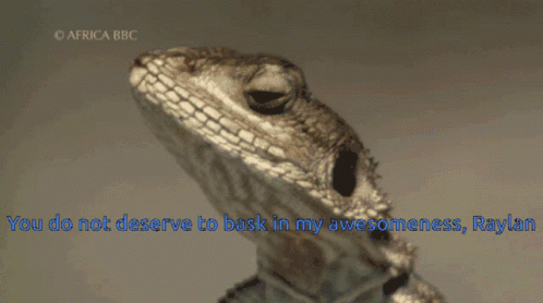 A lizard delivers a stern message to Raylan: 'You do not deserve to bask in my awesomeness.'