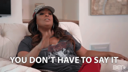 A woman on a couch with the caption 'You Don't Have To Say It', expressing a relatable sentiment.