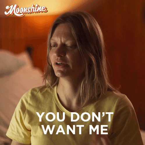 Rhian Gallagher delivers the line 'You don't want me to resent you' with a serious expression in a scene from Moonshine.