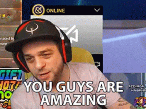 Streamer Doodybeard, wearing a hat and headphones, expresses gratitude saying 'You Guys Are Amazing'.
