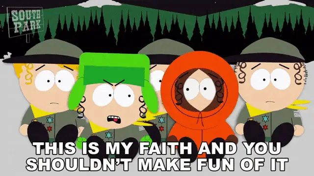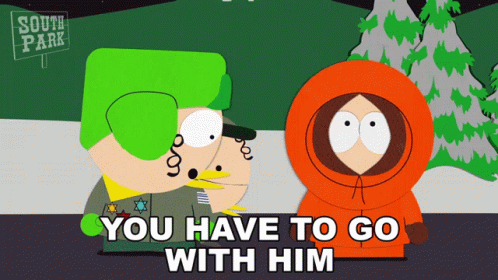 Kyle Broflovski tells Kenny McCormick, 'You have to go with him,' in a scene from South Park.