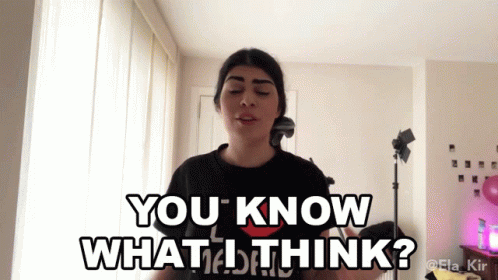 Ela Kir asks 'You Know What I Think?' directly to the camera, ready to share her opinion.