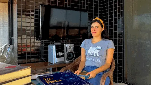 Jess from New Girl humorously explains her 'really sexy posture' to a friend, gesturing confidently.