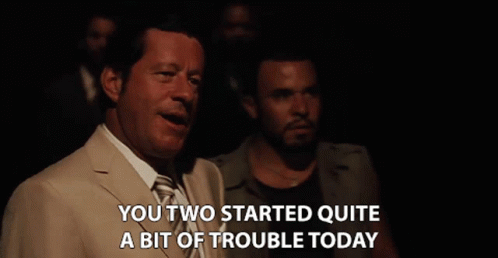 Hernan Reyes (Joaquim De Almeida) confronts two individuals, stating they started quite a bit of trouble today.