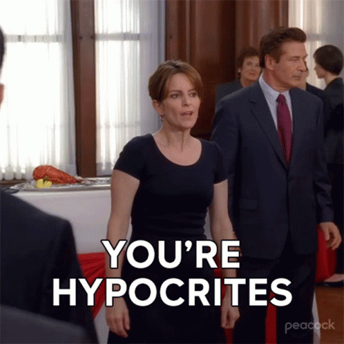 Liz Lemon (Tina Fey) confronts someone, declaring 'You're Hypocrites' in a scene from 30 Rock.