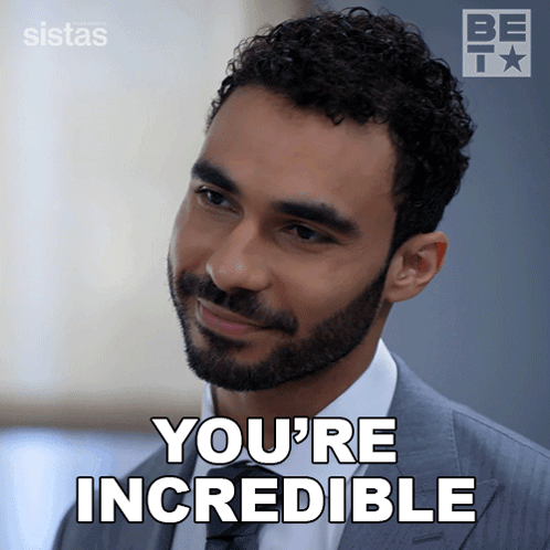 Robin, a man in a suit, is praised with the words "You're Incredible" on screen, from BET's Sistas.