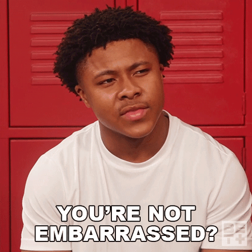 Junebug Carson from The Ms. Pat Show asks, 'You're not embarrassed?' with a questioning expression.