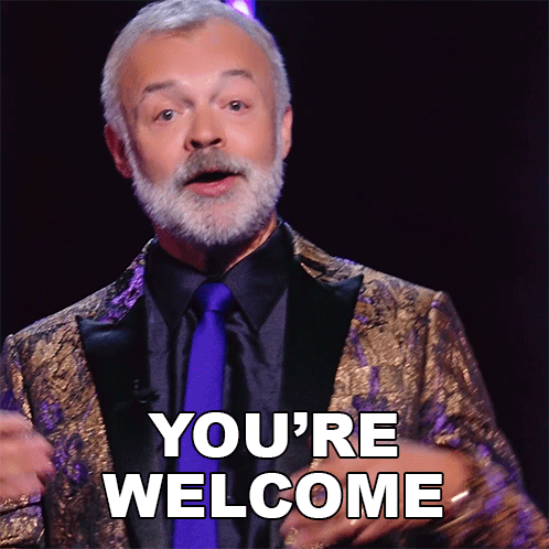 Graham Norton delivers a polite 'You're Welcome' with a charming smile.