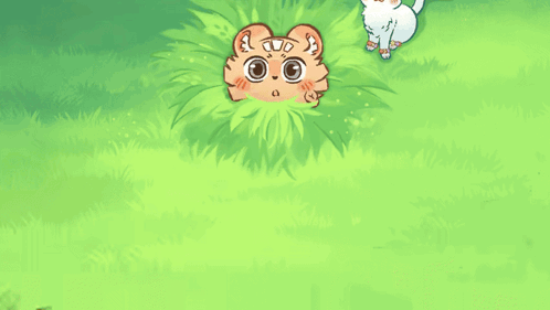 a cartoon drawing of a cat and a lion peeking out of the grass
