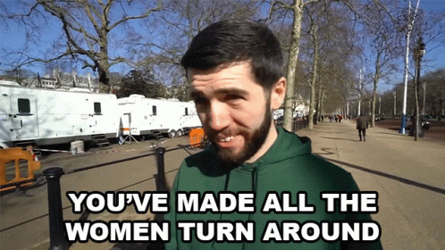YouTuber Zerkaa says 'You've made all the women turn around' while filming in a public setting.
