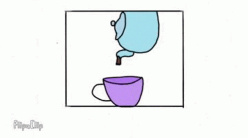Kai Xin's simple cartoon animation of a light blue teapot pouring dark liquid into a purple teacup.