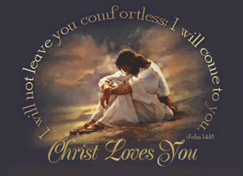 An image of Jesus sitting on a rock, with the comforting message 'Christ Loves You' and a Bible verse.