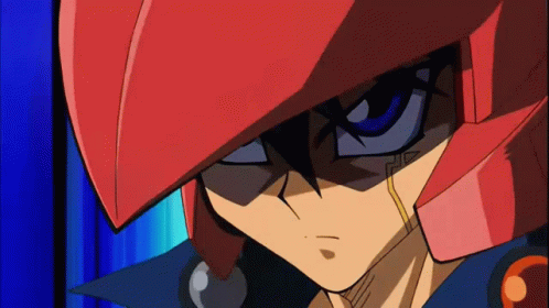 Character in red helmet summons Junk Warrior in Yu-Gi-Oh! 5D's, showcasing the powerful monster.