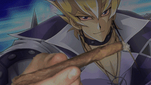 Jack Atlas from Yu-Gi-Oh! 5D's looking cool while holding a cigar.