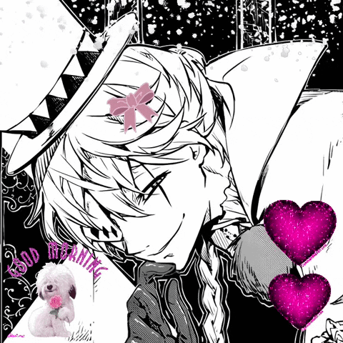 A black and white drawing of Yuni's boyfriend Nikolai, featuring a 'Good Morning' message and sparkling hearts.