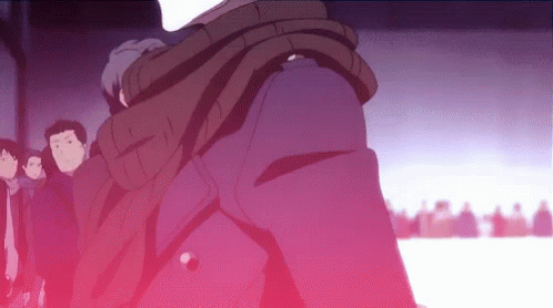 Yuri Katsuki and Viktor Nikiforov share an emotional hug, surrounded by a cheering crowd.