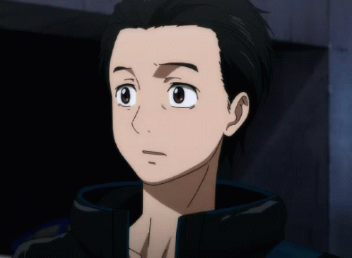 Yuri Katsuki from Yuri On Ice looks sad, with tears welling in his eyes.