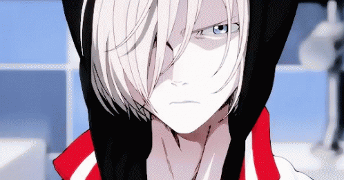 Yuri Plisetsky (Yurio) from Yuri on Ice with an intense gaze, wearing a black and red hoodie.