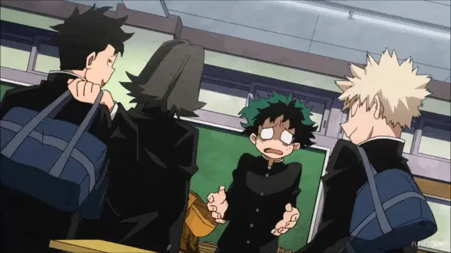 Yuuri Katsuki and Victor Nikiforov from Yuri on Ice sit together, Victor holding their beloved poodle Makkachin.