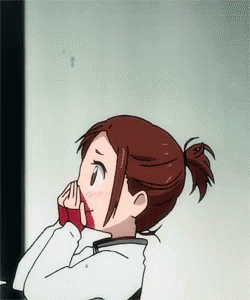 Yurionice Yuko covers her mouth in surprise, experiencing a nose bleed with flushed cheeks.
