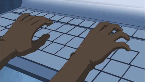 Yusei Fudo from Yu-Gi-Oh! 5D's intently typing on a laptop keyboard.
