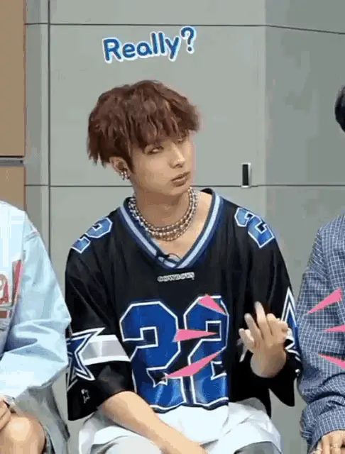 ONF member Yuto performing on stage in a blue and white military-style uniform, pointing at the camera.