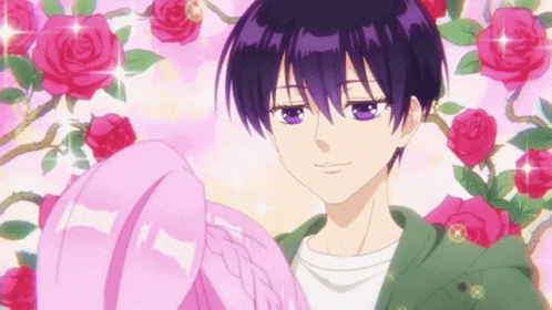 Yuu Izumi and Shikimori share a sweet, romantic moment surrounded by sparkling roses.