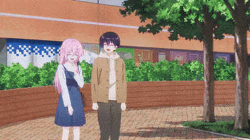 Yuu Izumi and Shikimori walking and talking, then looking surprised in an anime scene.