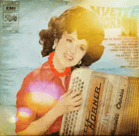 Yvette Horner on her record cover, holding a Hohner accordion, a classic image of the French musician.