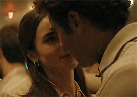 Zac Efron as Ted Bundy shares an intimate moment with a woman, looking into her eyes in a crowded room.