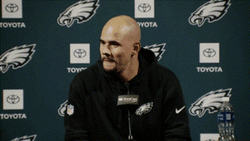 Zach Baun, wearing an Eagles hoodie, sits at a press conference with Toyota and Eagles logos in the background.
