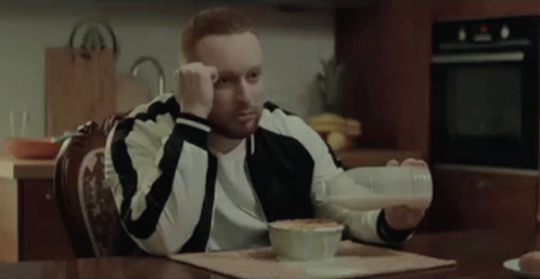 Lesha Swik, also known as Alexey Igorevich Norkitovich, looks pensive while pouring milk into cereal for breakfast.