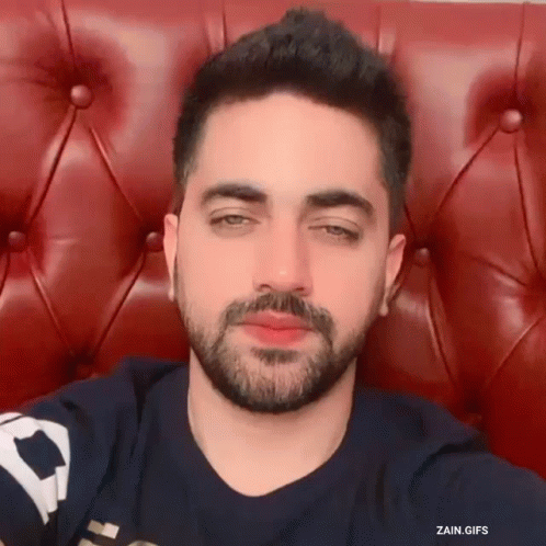 Zain Imam, the Indian actor, playfully blows a kiss to the camera while sitting comfortably on a red tufted couch.