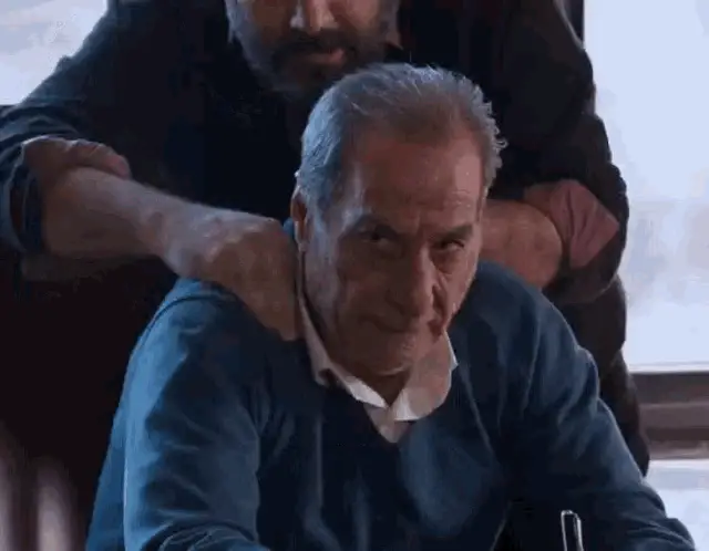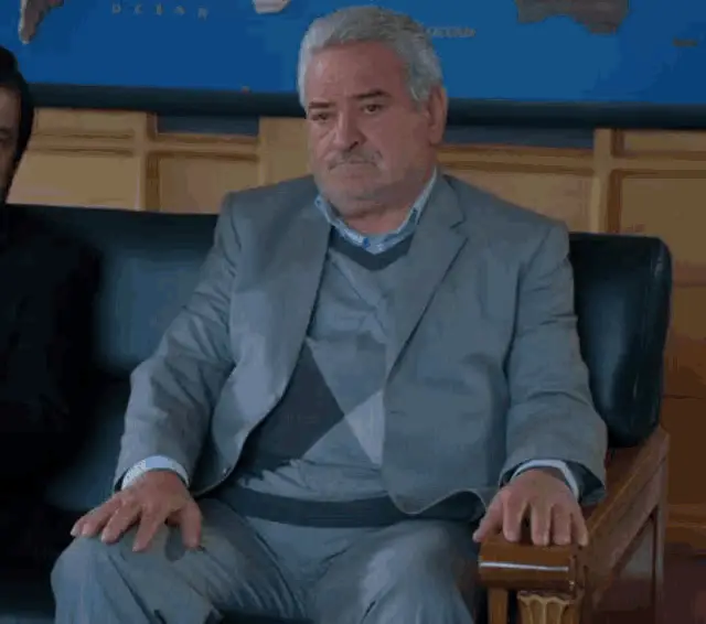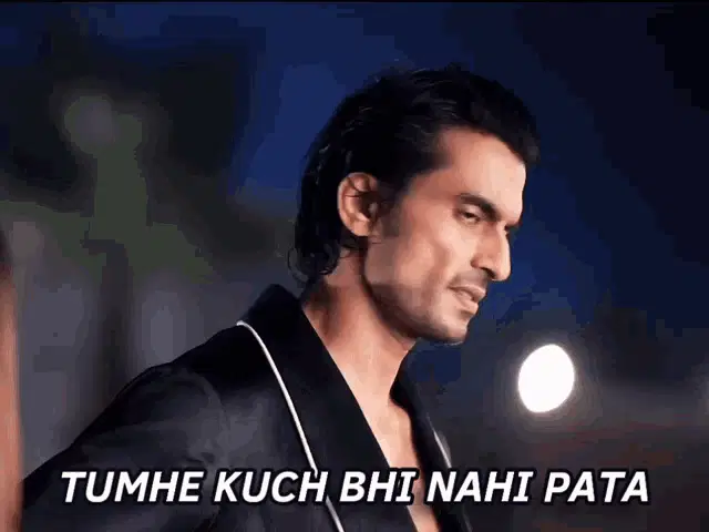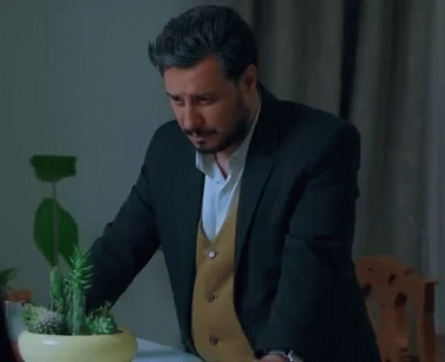 A man from Zakhm Zakhme Kari in a suit and vest looks up with an intense gaze next to a potted plant.