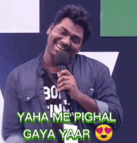 Zakir Khan smiles and speaks into a microphone, saying 'Yaha Me Pighal Gaya Yaar' with heart emojis.