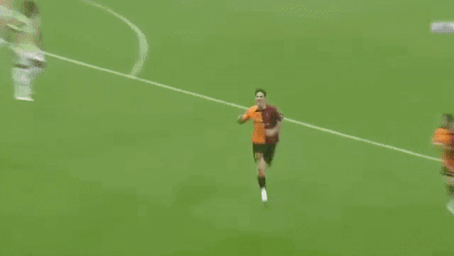 Nicolo Zaniolo celebrates a goal for Galatasaray, kneeling on the field in his number 17 jersey.