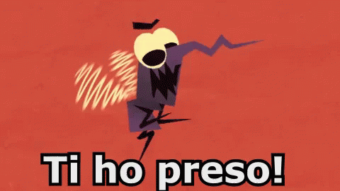 A cartoon mosquito-like creature with sharp teeth and yellow eyes exclaims 'I got you!' on a red background.