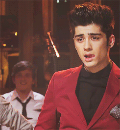 Zayn Malik, dressed in a striking red jacket, performs live on stage, captivating the audience.