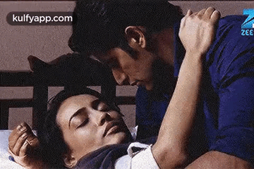 A man and woman share a tender, emotional embrace in a scene from the Indian TV show Qubool Hai.