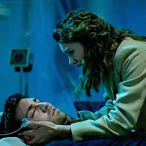 Zehra Balaban (Deniz Baysal) cradles Serdar Kılıçarslan (Çağlar Ertuğrul) in an emotional scene from Teşkilat.